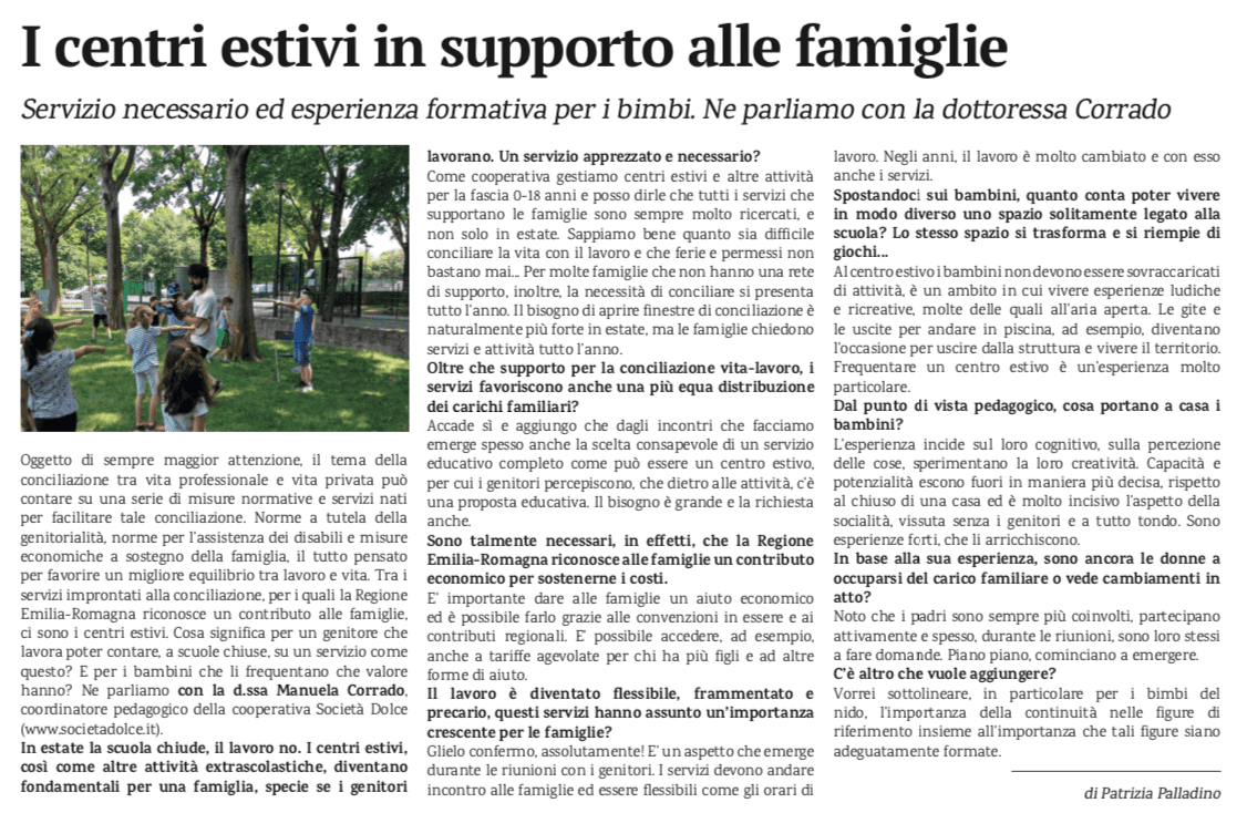 Società Dolce, dai Nidi al sostegno alle famiglie: un modello educativo aperto